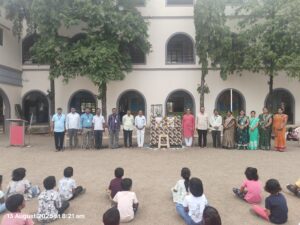 कार्यक्रमास संस्थेचे उपाध्यक्ष मा. चिंतामण पाटील, मुख्याध्यापक व्ही. बी. पाटील, मुख्याध्यापक एस. एस. पाटील आदी मान्यवर उपस्थित होते. भारतमाता व बालकवींच्या प्रतिमेला पुष्पहार अर्पण करून अभिवादन करण्यात आले.