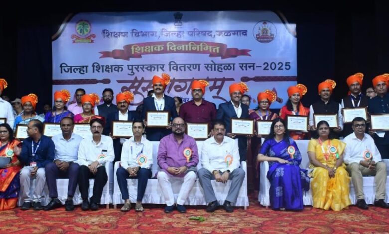 जळगाव प्रतिनीधी दि. 5 सप्टेंबर – प्रत्येकाच्या जीवनात गुरुजींचा आशीर्वाद अत्यंत महत्त्वाचा आहे. 5G-6G काही आले तरी गुरुG शिवाय भविष्य उजळणार नाही. शिक्षकांनी बदलत्या काळात अपडेट राहणे गरजेचे आहे. मराठी शाळांचे वैभव टिकवण्यासाठी पटसंख्या वाढवणे हीच शिक्षकांची खरी जबाबदारी आहे. जि.प. शाळा म्हणजे गरीब व सामान्य कुटुंबांतील विद्यार्थ्यांचा आसरा असून त्यांचे भवितव्य गुरुजींच्या हातात आहे. गुरुजी हा संपूर्ण समाजाचा आदर्श आहे. विद्यार्थ्यांचे यश हेच शिक्षकांचे खरे पारितोषिक आहे. शिक्षक हा माणूस घडवणारा खरा शिल्पकार असून आजच्या युगात शाळेला ड्रेस कोड असलाच पाहिजे. शिक्षका समाजाने एकत्र येऊन मराठी शाळांचे वैभव वाढवावे असे प्रतिपादन पालकमंत्री गुलाबराव पाटील यांनी केले.*