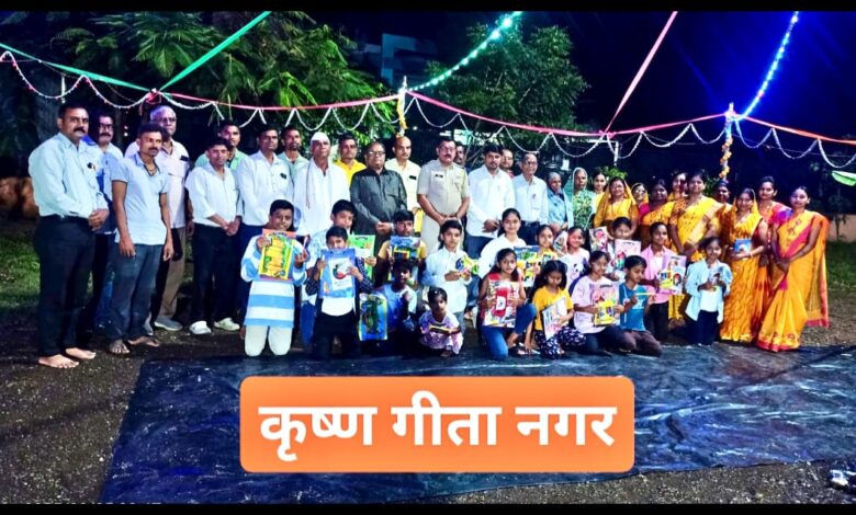 विद्यार्थ्यांना शैक्षणिक साहित्य व ग्रंथ भेट कृष्ण गीता नगरवासीयांचा स्थुत्य उपक्रम : सुनील पवार ( पोलीस निरीक्षक )