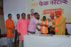 नंदुरबार (प्रतिनिधी) :- भगव्या आतंकवादाचा बागुलबुवा पसरवण्यासाठी मागील काही वर्षांत अनेक केसेस मध्ये खऱ्या आरोपीना मोकाट सोडून विनाकारण निष्पाप हिंदूंचे बळी ज्यांनी घेतले, तसेच अनेक हिंदू कुटुंबाची आयुष्य उध्वस्त केली, त्या सर्वांचे कारनामे आता बाहेर पडू लागले आहेत. अखेर सत्य सर्वांसमोर येणारच आहे, त्यामुळे भगव्या आतंकवादाचा बागुलबुवा पसरवून संपूर्ण हिंदू समाजाला ज्यांनी बदनाम केले अशाना हिंदू समाजच अद्दल घडवेल, यावर माझी ठाम श्रद्धा आहे, असे परखड विधान ‘दाभोलकर हत्या आणि मी’ या पुस्तकाचे लेखक श्री. विक्रम भावे यांनी केले. नंदुरबार येथील अग्रवाल भुवन येथे समस्त हिंदुत्ववादी संघटना आयोजित ‘भगव्या आतंकवादाचे फेक नॅरेटिव्ह’ या विषयावरील विशेष व्याख्यानात ते बोलत होते. या कार्यक्रमाला हिंदु जनजागृती समितीचे उत्तर महाराष्ट्र संघटक प्रशांत जुवेकर यांनीही संबोधित केले.