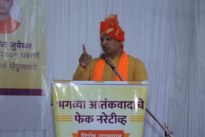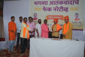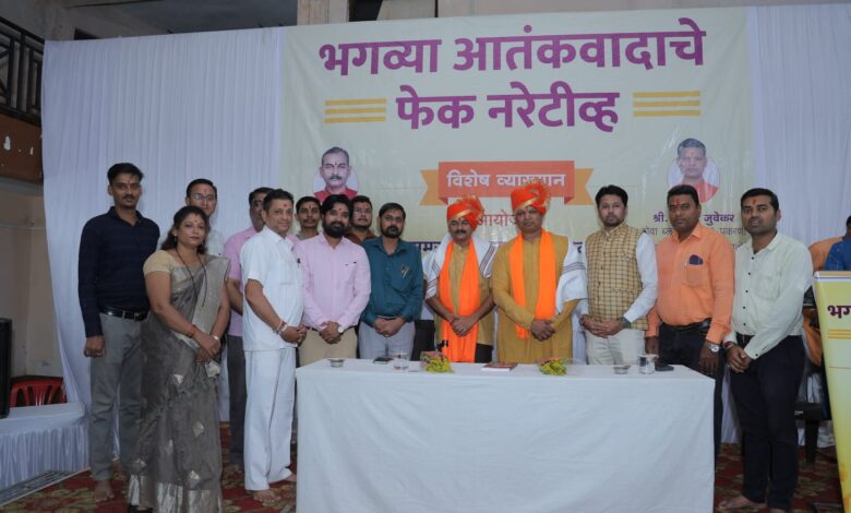 नंदुरबार (प्रतिनिधी) :- भगव्या आतंकवादाचा बागुलबुवा पसरवण्यासाठी मागील काही वर्षांत अनेक केसेस मध्ये खऱ्या आरोपीना मोकाट सोडून विनाकारण निष्पाप हिंदूंचे बळी ज्यांनी घेतले, तसेच अनेक हिंदू कुटुंबाची आयुष्य उध्वस्त केली, त्या सर्वांचे कारनामे आता बाहेर पडू लागले आहेत. अखेर सत्य सर्वांसमोर येणारच आहे, त्यामुळे भगव्या आतंकवादाचा बागुलबुवा पसरवून संपूर्ण हिंदू समाजाला ज्यांनी बदनाम केले अशाना हिंदू समाजच अद्दल घडवेल, यावर माझी ठाम श्रद्धा आहे, असे परखड विधान ‘दाभोलकर हत्या आणि मी’ या पुस्तकाचे लेखक श्री. विक्रम भावे यांनी केले. नंदुरबार येथील अग्रवाल भुवन येथे समस्त हिंदुत्ववादी संघटना आयोजित ‘भगव्या आतंकवादाचे फेक नॅरेटिव्ह’ या विषयावरील विशेष व्याख्यानात ते बोलत होते. या कार्यक्रमाला हिंदु जनजागृती समितीचे उत्तर महाराष्ट्र संघटक प्रशांत जुवेकर यांनीही संबोधित केले.