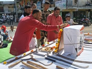 पाळधी (ता. धरणगाव) येथे हिंदू जनजागृती समितीच्या वतीने शौर्य जागरण शस्त्र पूजन उत्सव संपन्न.