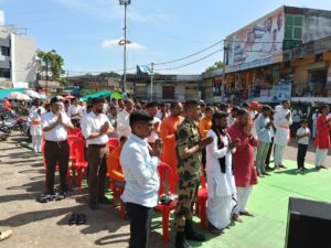 पाळधी (ता. धरणगाव) : विजयादशमी निमित्त हिंदू जनजागृती समितीच्या वतीने शौर्य जागरण शस्त्र पूजन कार्यक्रमाचे आयोजन करण्यात आले. समिती सेवकांनी पारंपरिक शस्त्रांचे शास्त्रोक्त पद्धतीने पूजन करून विधी संपन्न केला.या कार्यक्रमास माननीय श्री. प्रतापराव गुलाबराव पाटीलह.भ.प. श्री ज्ञानेश्वर महाराज पाळधीकर, तसेच खर्ची येथील रहिवासी बीएसएफ जवान सोपान माळी यांची उपस्थिती लाभली.