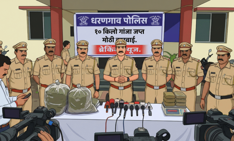 तालुक्यातील धरणगाव–चोपडा रस्त्यावर असलेल्या शासकीय आयटीआयजवळ स्थानिक गुन्हे शाखेच्या पथकाने मंगळवार, दि. ३ डिसेंबर २०२५ रोजी रात्री सुमारे ८ वाजेच्या सुमारास मोठी कारवाई करत जवळपास १० किलो गांजा जप्त केला. या प्रकरणी धरणगाव पोलीस स्थानकात गुन्हा दाखल करण्याची प्रक्रिया रात्री उशिरापर्यंत सुरू होती.मिळालेल्या माहितीनुसार, पोलीस अधीक्षक महेश्वर रेड्डी यांच्या मार्गदर्शनाखाली व स्थानिक गुन्हे शाखेचे पोलीस निरीक्षक राहुल गायकवाड यांच्या नेतृत्वाखाली ही कारवाई करण्यात आली. पथकात धरणगाव पोलीस स्थानकाचे पोलीस निरीक्षक सुनील पवार, पोलीस उपनिरीक्षक संतोष पवार, हेडकॉन्स्टेबल विष्णू बिऱ्हाडे, पोलीस कॉन्स्टेबल दीपक माळी, रवींद्र पाटील, सुधीर चौधरी, संदीप पाटील आणि किशोर भोई यांचा समावेश होता.स्थानिक गुन्हे शाखेच्या पथकाने मिळालेल्या गुप्त माहितीच्या आधारे संशयितांना घेराबंदी करून ही कारवाई केली.