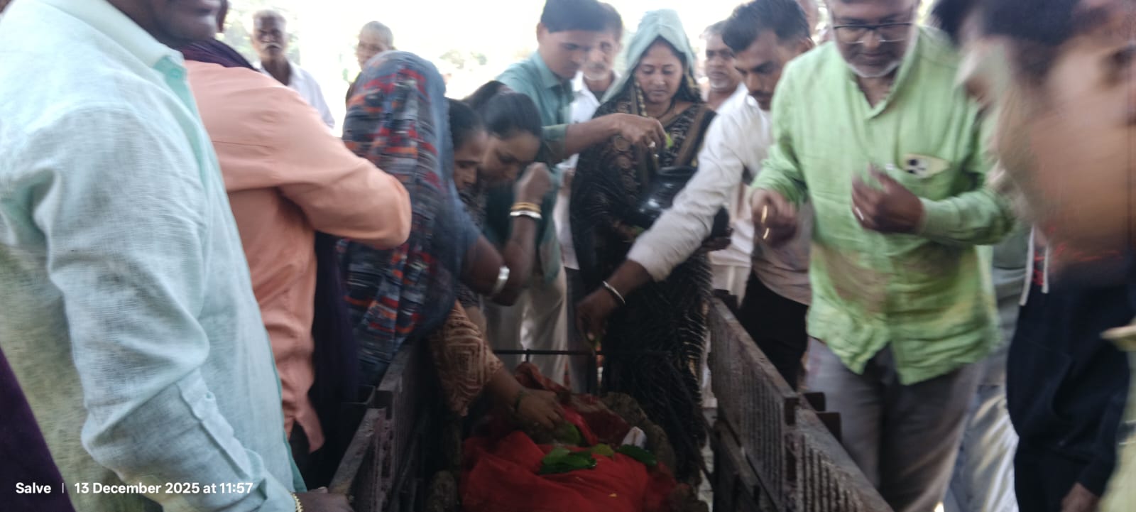 अंत्ययात्रा शांततेत पार पडली. स्मशानभूमीत विधी सुरू असताना उपस्थितांचे डोळे पाणावले होते. धार्मिक मंत्रोच्चारांदरम्यान कन्येने अत्यंत धैर्याने आणि श्रद्धेने आईच्या चितेला अग्नीडाग दिला. त्या क्षणी वातावरण गंभीर आणि भावनात्मक झाले होते.