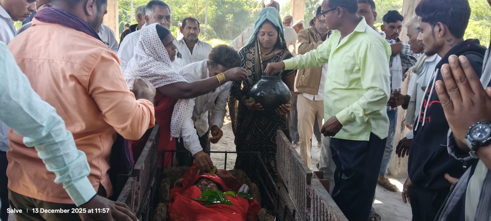 अंत्ययात्रा शांततेत पार पडली. स्मशानभूमीत विधी सुरू असताना उपस्थितांचे डोळे पाणावले होते. धार्मिक मंत्रोच्चारांदरम्यान कन्येने अत्यंत धैर्याने आणि श्रद्धेने आईच्या चितेला अग्नीडाग दिला. त्या क्षणी वातावरण गंभीर आणि भावनात्मक झाले होते.