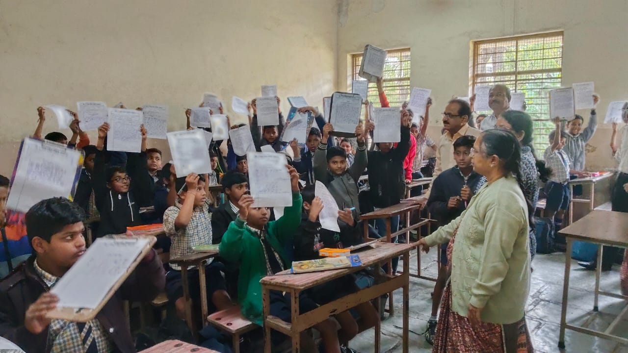 या स्पर्धा अ, ब, क अशा तीन गटांमध्ये घेण्यात आल्या. चित्रकला स्पर्धेत स्वच्छता अभियान, ऑपरेशन सिंदूर व भारतातील AI क्रांती या विषयांवर तब्बल 300 विद्यार्थ्यांनी आकर्षक व आशयपूर्ण चित्रे साकारली.