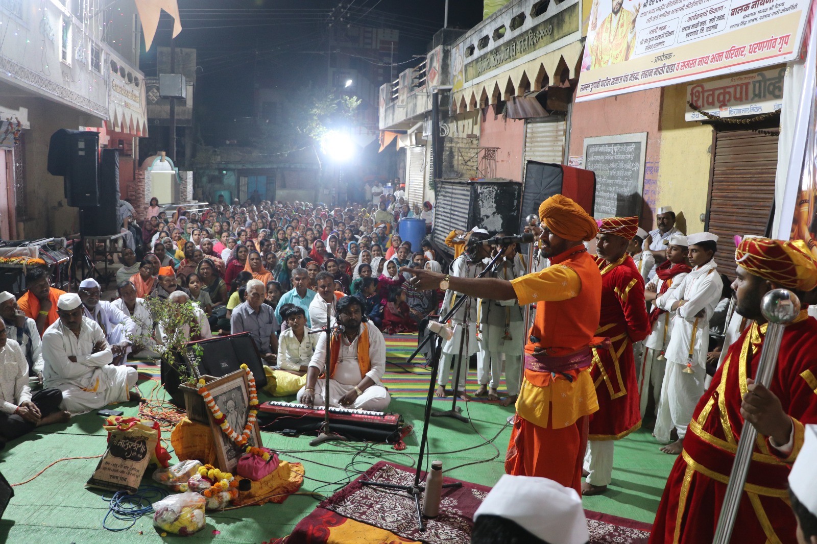 कार्यक्रमास भजनी मंडळ श्री संतकृपा वारकरी शिक्षण संस्था, धरणगाव यांनी सुरेल अभंग – भजनांची साथ दिली. कार्यक्रमाला प्रमुख उपस्थिती म्हणून परमपूज्य गुरुवर्य बालकनाथजी महाराज, संस्थापक अध्यक्ष – श्री चैतन्य नवनाथ सिद्ध आश्रम; नवनाथ नगरी, कोळपिंप्री यांची उपस्थिती लाभली. त्यांनी नवनाथभक्ती, संप्रदायाचे सामाजिक व आध्यात्मिक कार्य तसेच कलियुगात नामसाधनेचे महत्त्व यावर मोलाचे मार्गदर्शन केले. जीवब्रम्ह सेवेचे व्रत घेऊन मार्गक्रमण करा म्हणजे खऱ्या अर्थाने अध्यात्माचे कार्य घडेल असे प्रतिपादन बालकनाथजी महाराजांनी केले.
