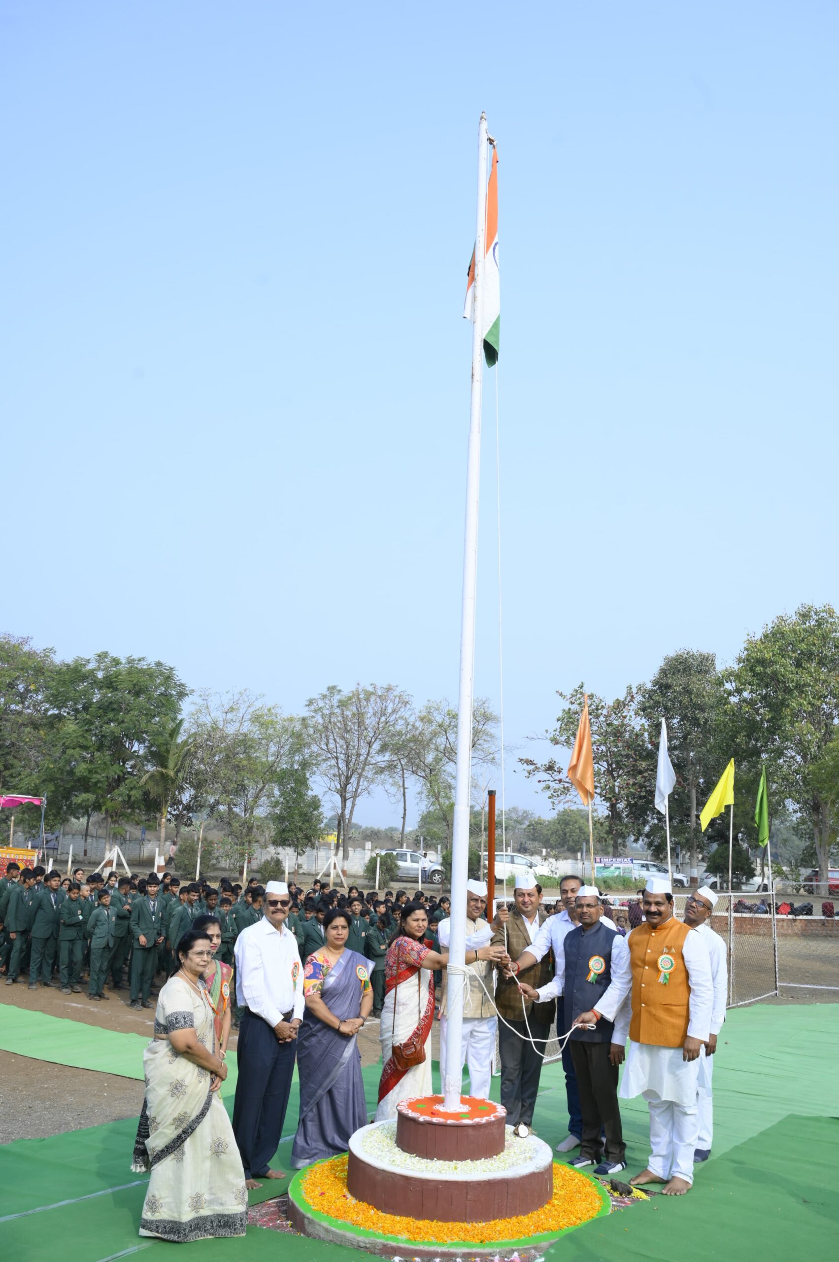 यांची उपस्थिती लाभली. मान्यवरांच्या हस्ते भारत माता पूजन व ध्वजारोहण करण्यात आले.