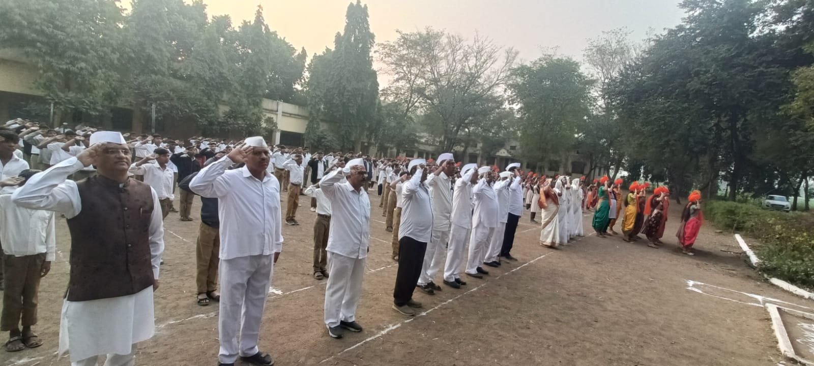 विद्यार्थ्यांनी देशभक्तीपर गीतांवर सुंदर कवायत सादर करून उपस्थितांची मने जिंकली. त्यानंतर वि. का. सोसायटीचे चेअरमन किशोर ब-हाटे यांच्या हस्ते सोसायटीत ध्वजारोहण करण्यात आले.